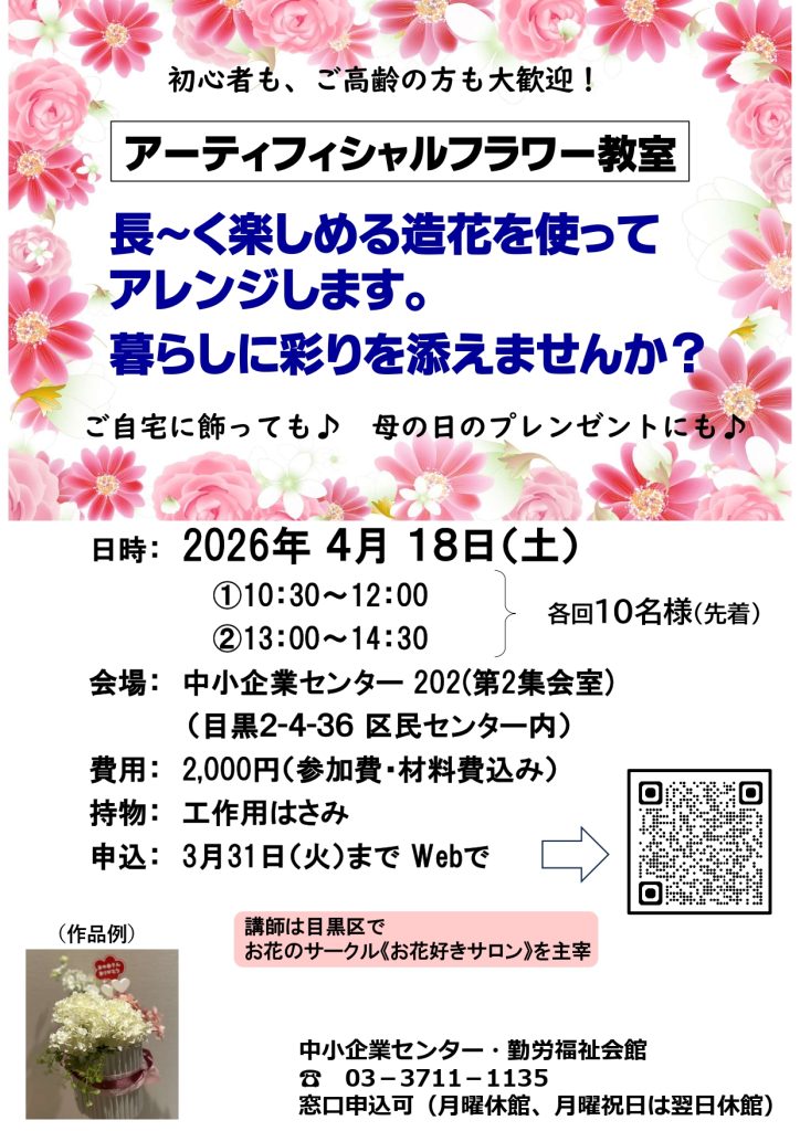 アーティフィシャルフラワー講座開催のご案内(4月18日(土)午前・午後)