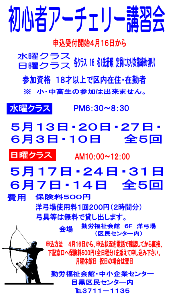「令和8年度 初心者アーチェリー講習会 ~年間日程~ 」