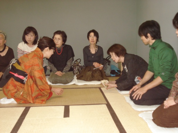 講師は、表千家山本宗拡教授。講座体験者は、目黒区在住、在勤の16名の方々。まったく初めての方もいらっしゃいましたが、和やかな雰囲気の中、日本古来の文化を楽しんでいただきました。