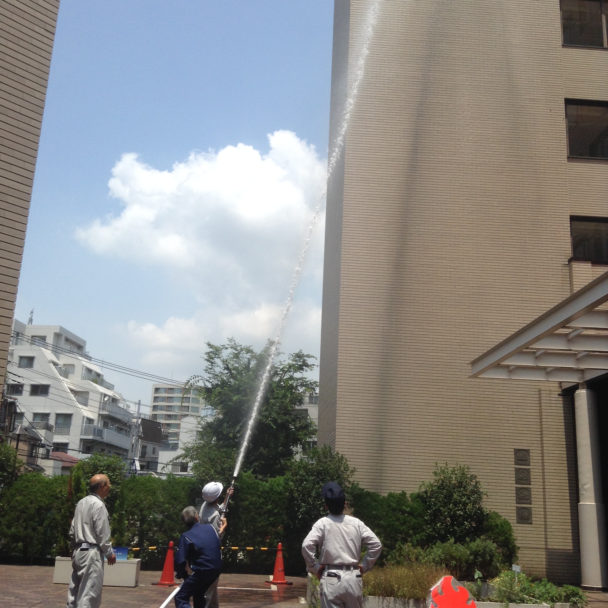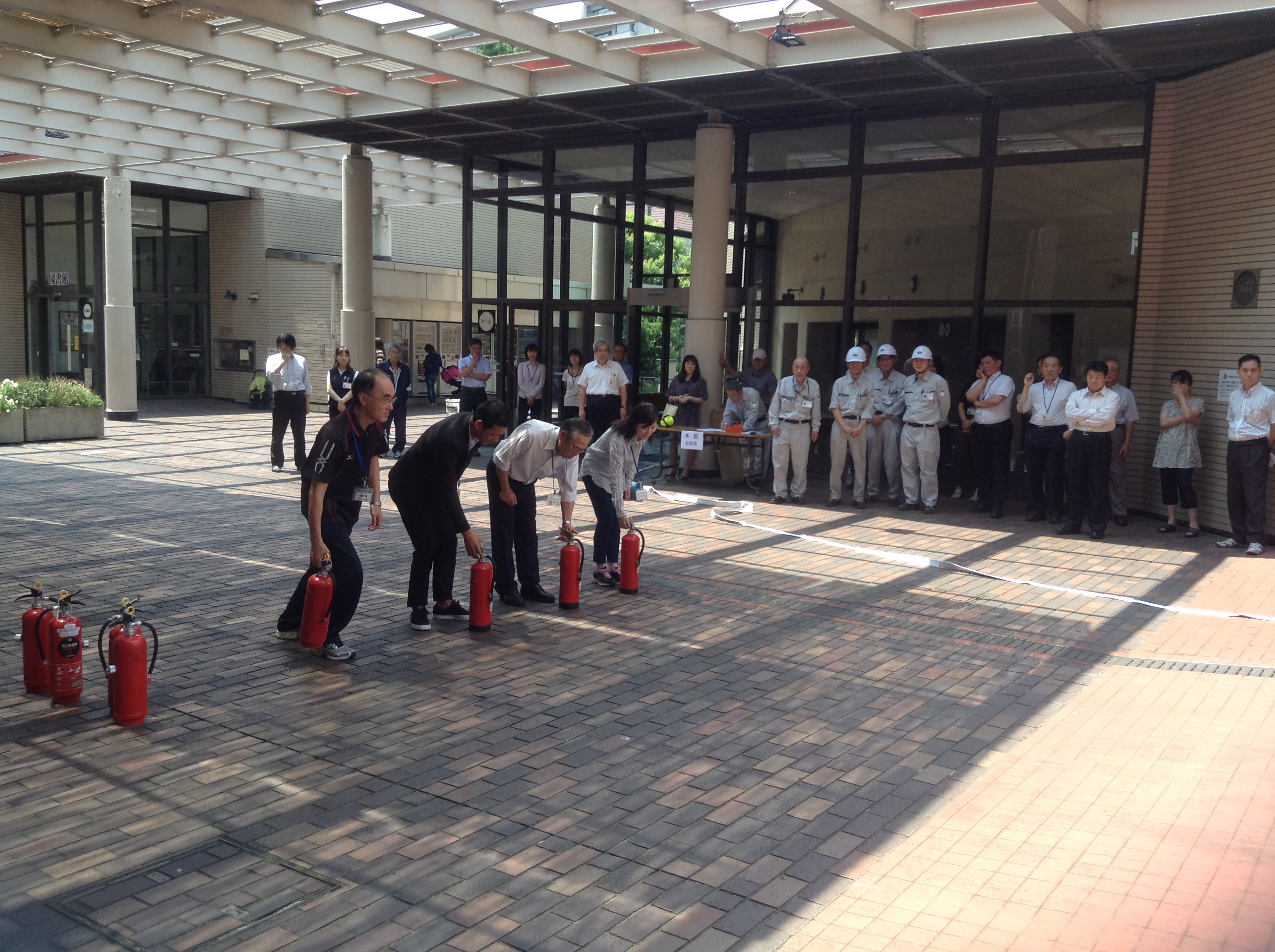 目黒区民センターにおきましては、年2回自衛消防訓練を行っております。本日(6月25日:木)10時30分より11時30分の間、目黒消防署の指導のもと①避難誘導訓練、②通報訓練、③消火訓練を行いました。